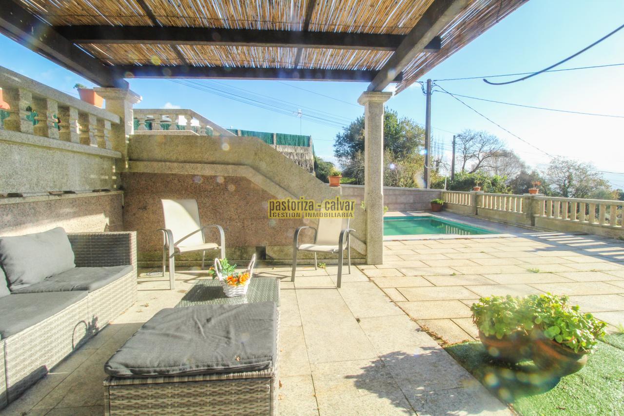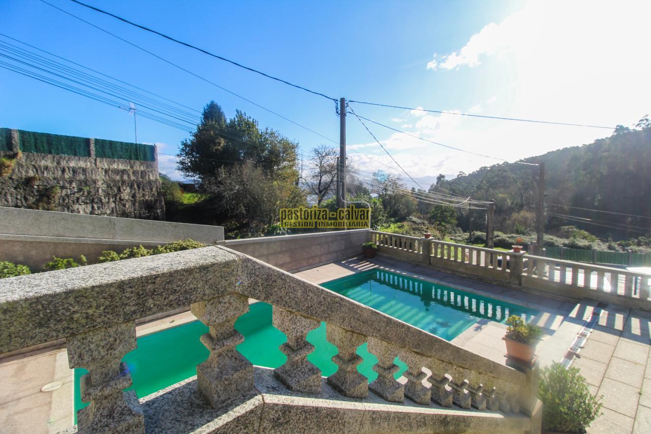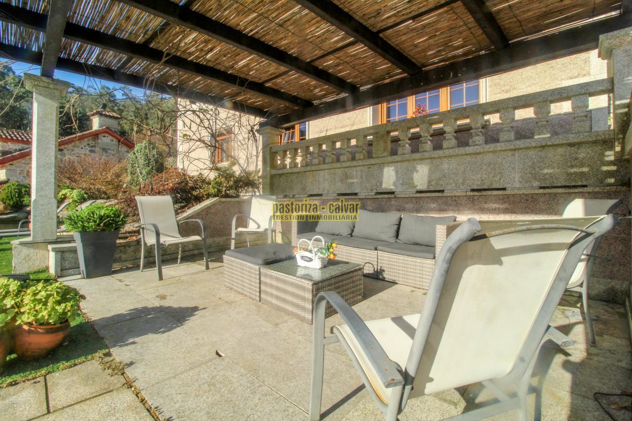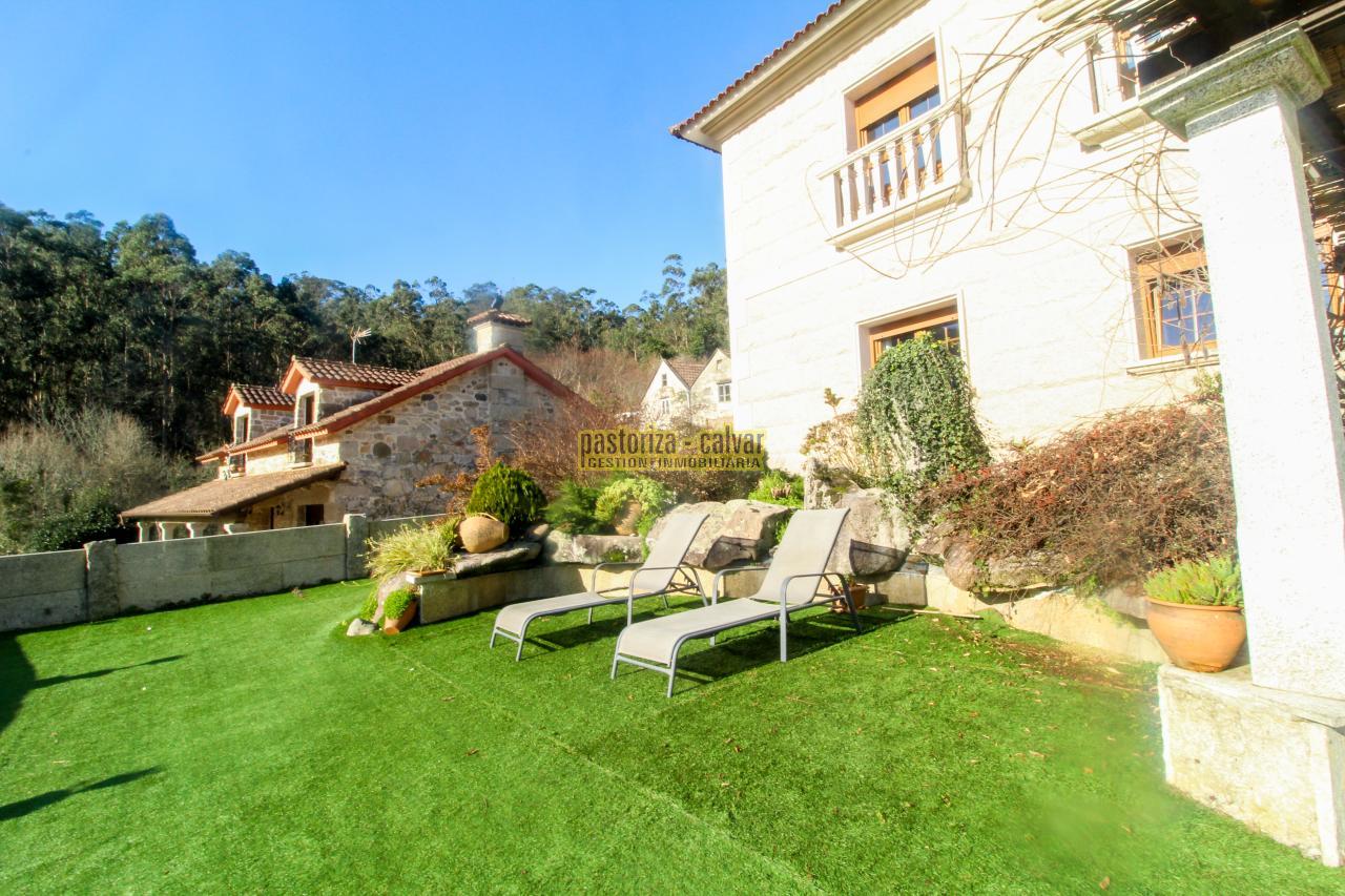 Este chalet consigue los dos efectos: construida en una familia vinculada al trabajo de la piedra, se nota en el cariño y el detalle que se puso en su construcci: distinta variedad de piedra gallega en laterales, acabados perfectos en ventanas y balaustradas, preciosa entrada señorial en la parte superior, piedra en suelos de acceso a la casa, en paredes y muros exteriores, bonito porche en piedra en la zona de la piscina...