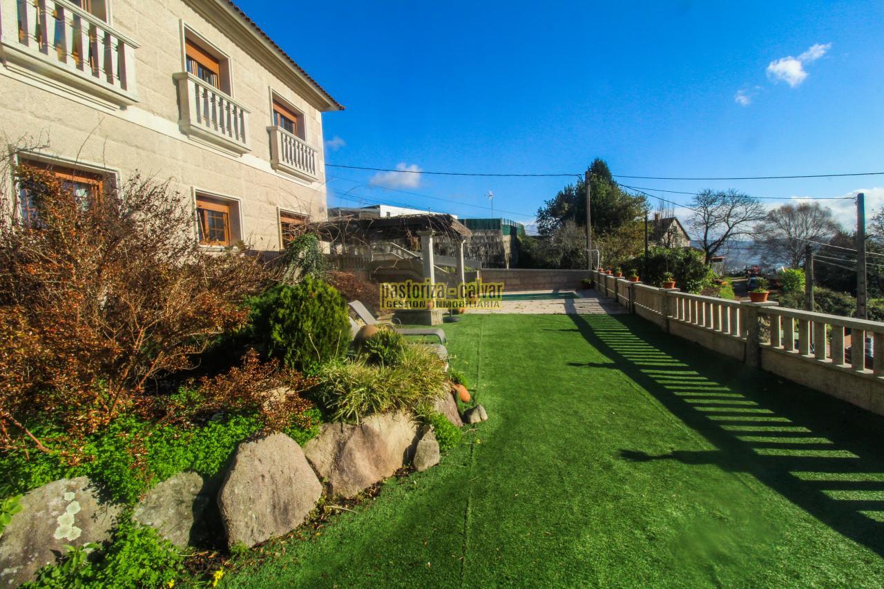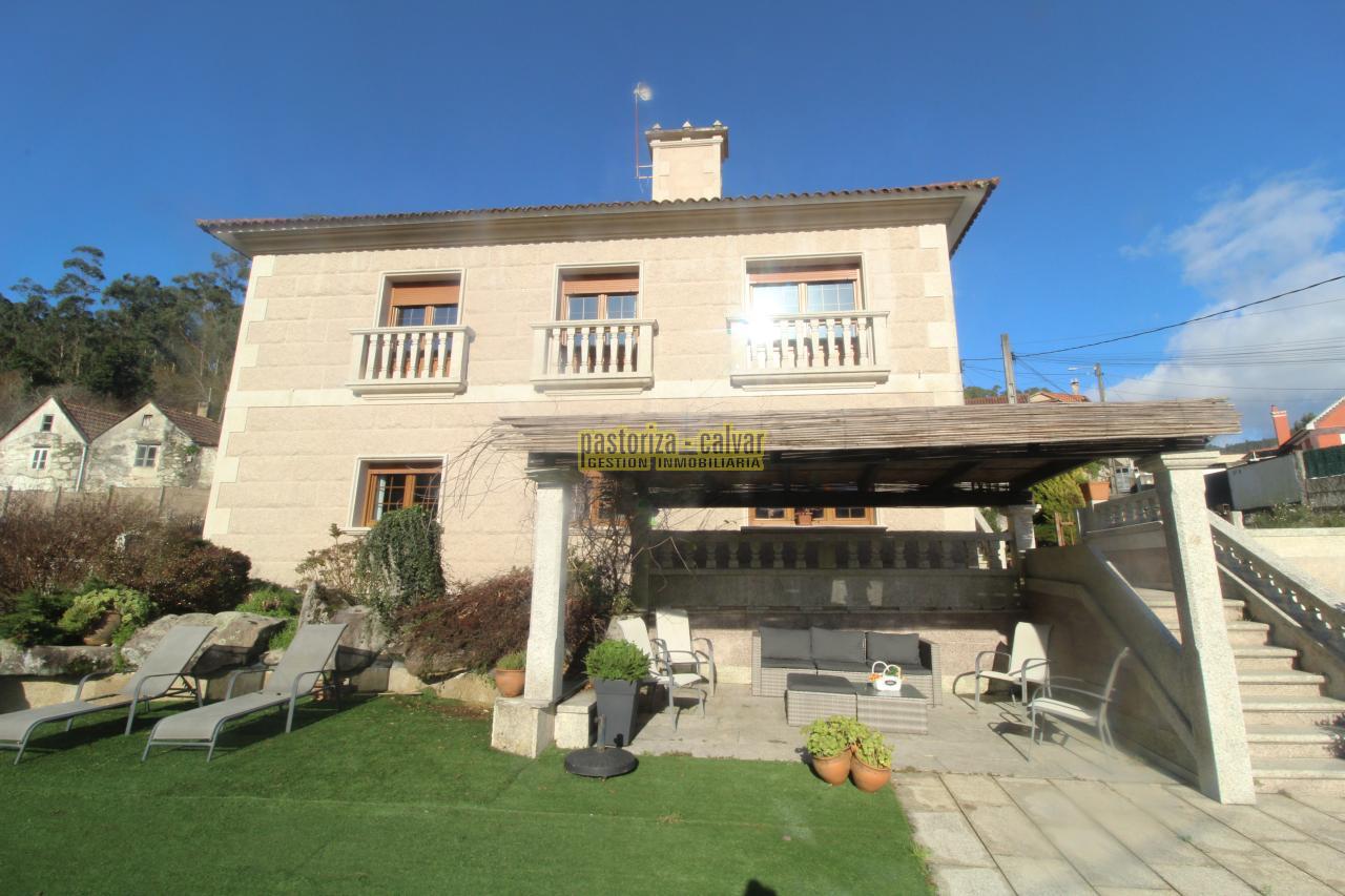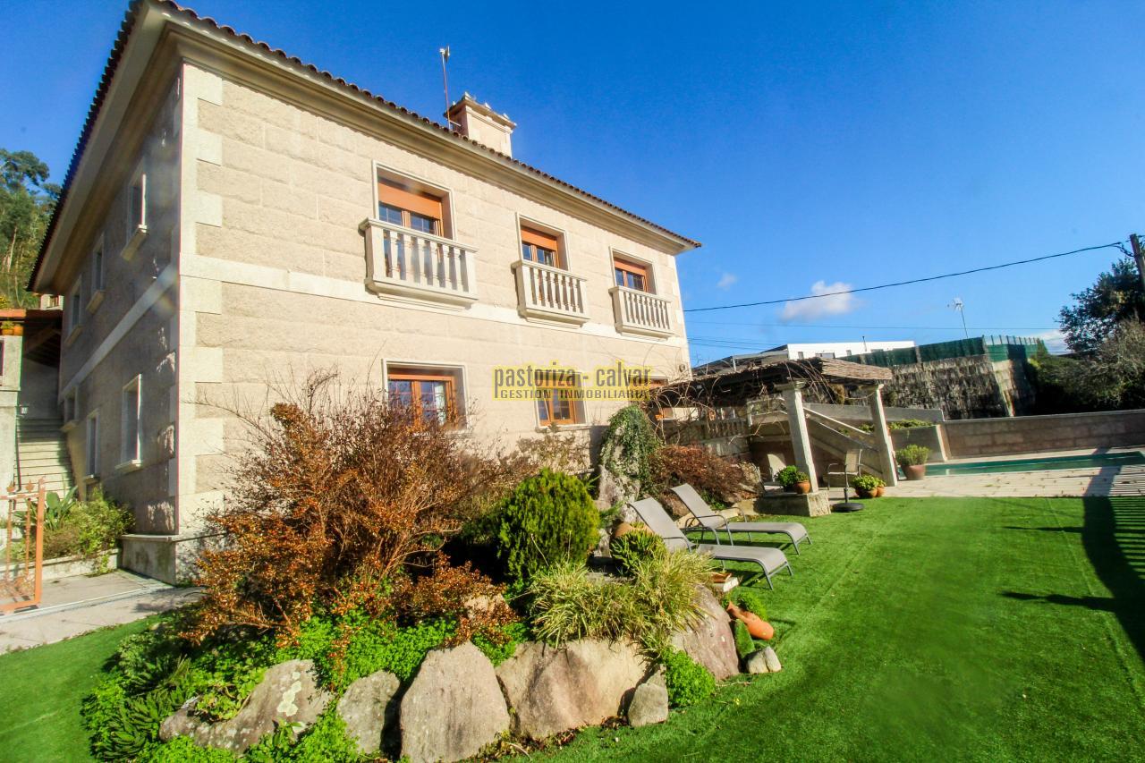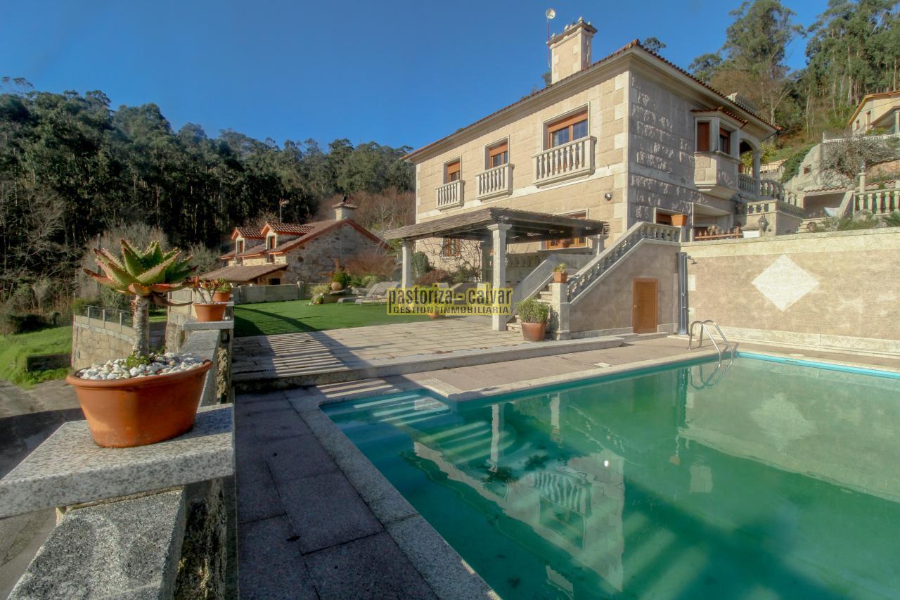 Este chalet consigue los dos efectos: construida en una familia vinculada al trabajo de la piedra, se nota en el cariño y el detalle que se puso en su construcci: distinta variedad de piedra gallega en laterales, acabados perfectos en ventanas y balaustradas, preciosa entrada señorial en la parte superior, piedra en suelos de acceso a la casa, en paredes y muros exteriores, bonito porche en piedra en la zona de la piscina...
