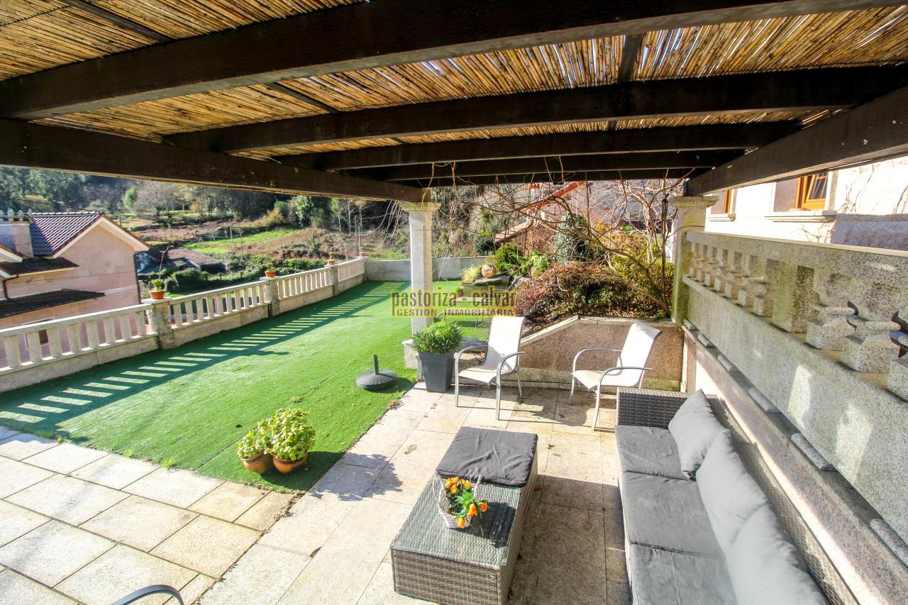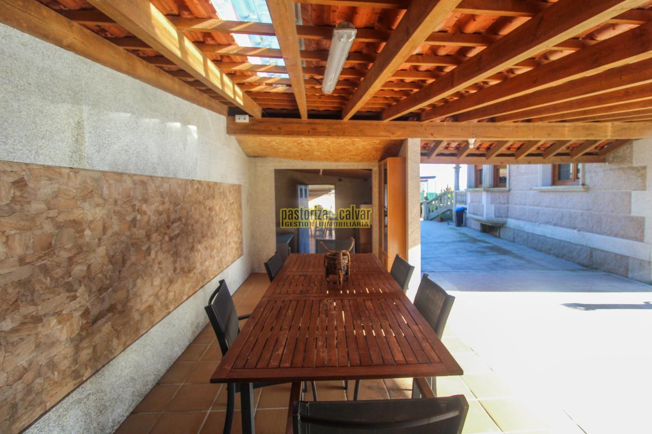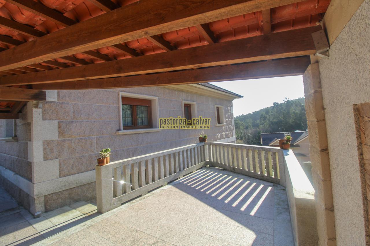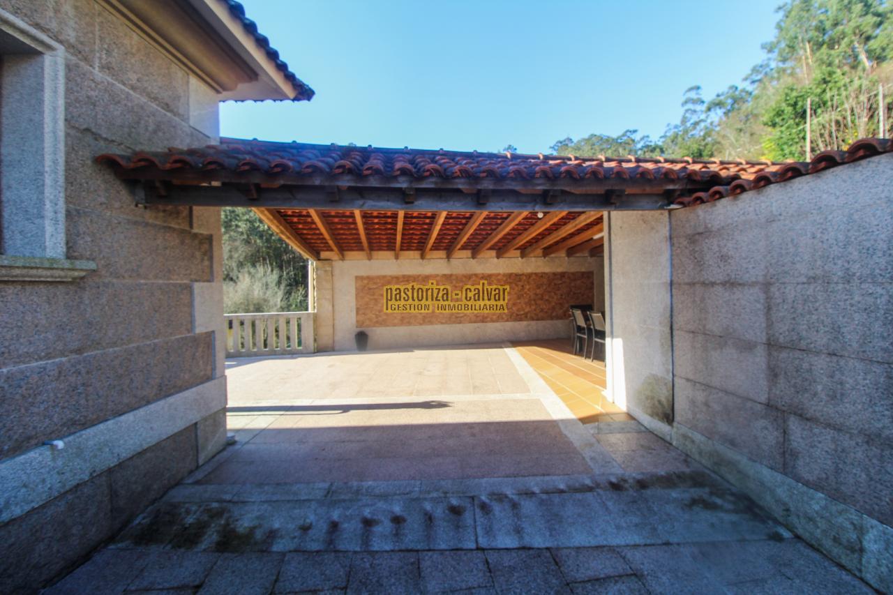 Este chalet consigue los dos efectos: construida en una familia vinculada al trabajo de la piedra, se nota en el cariño y el detalle que se puso en su construcci: distinta variedad de piedra gallega en laterales, acabados perfectos en ventanas y balaustradas, preciosa entrada señorial en la parte superior, piedra en suelos de acceso a la casa, en paredes y muros exteriores, bonito porche en piedra en la zona de la piscina...