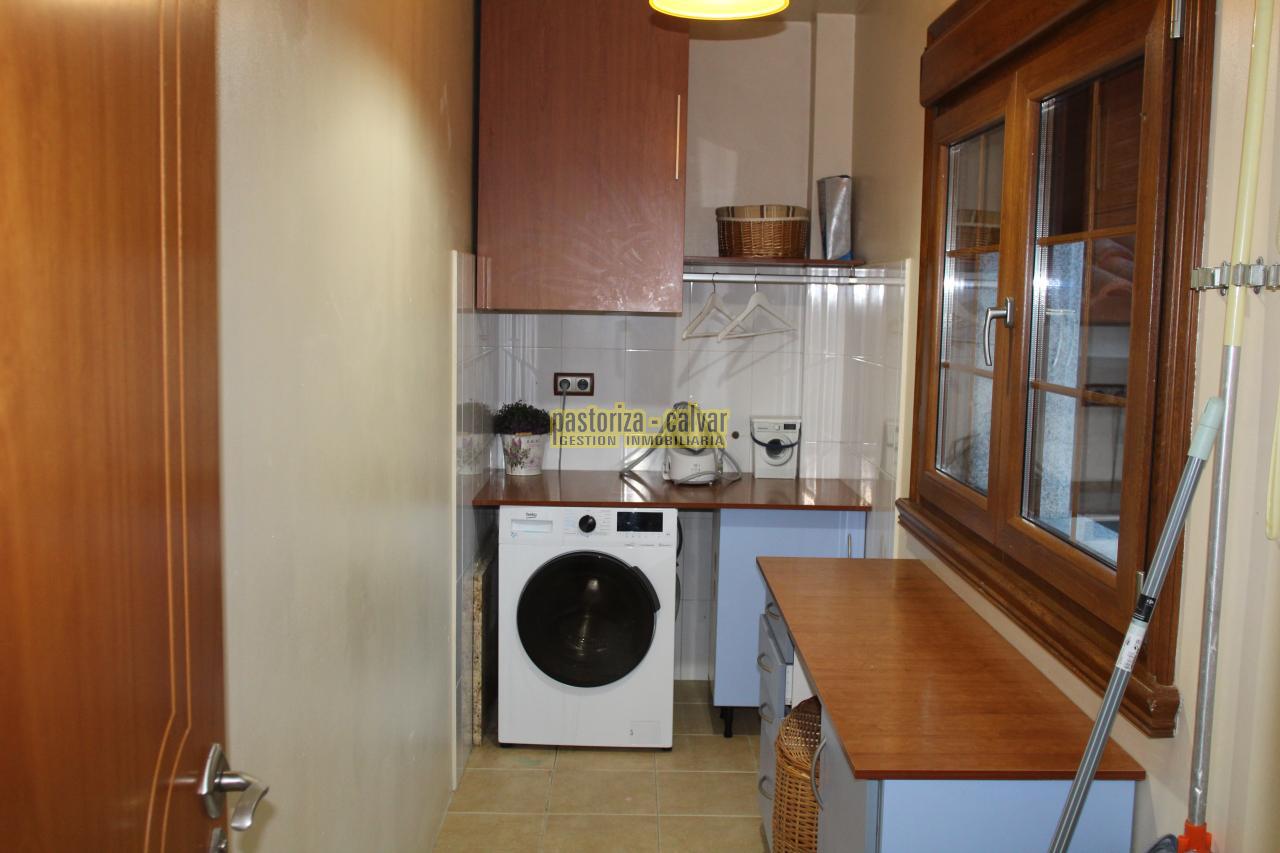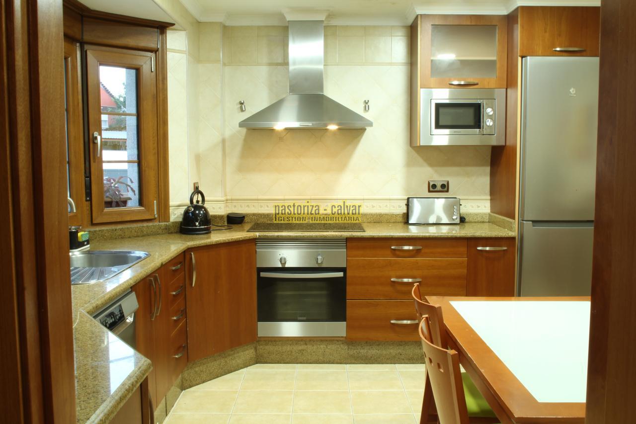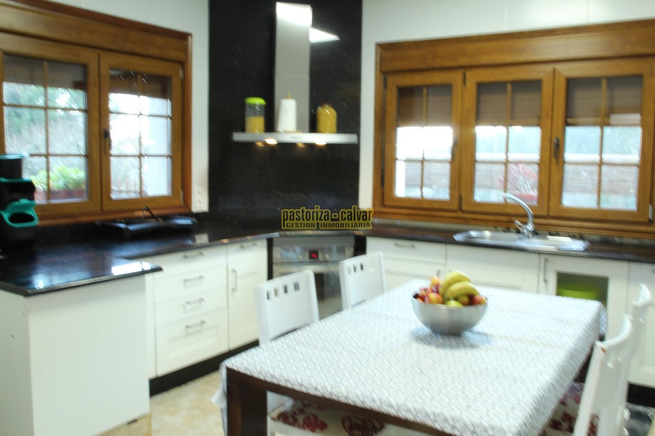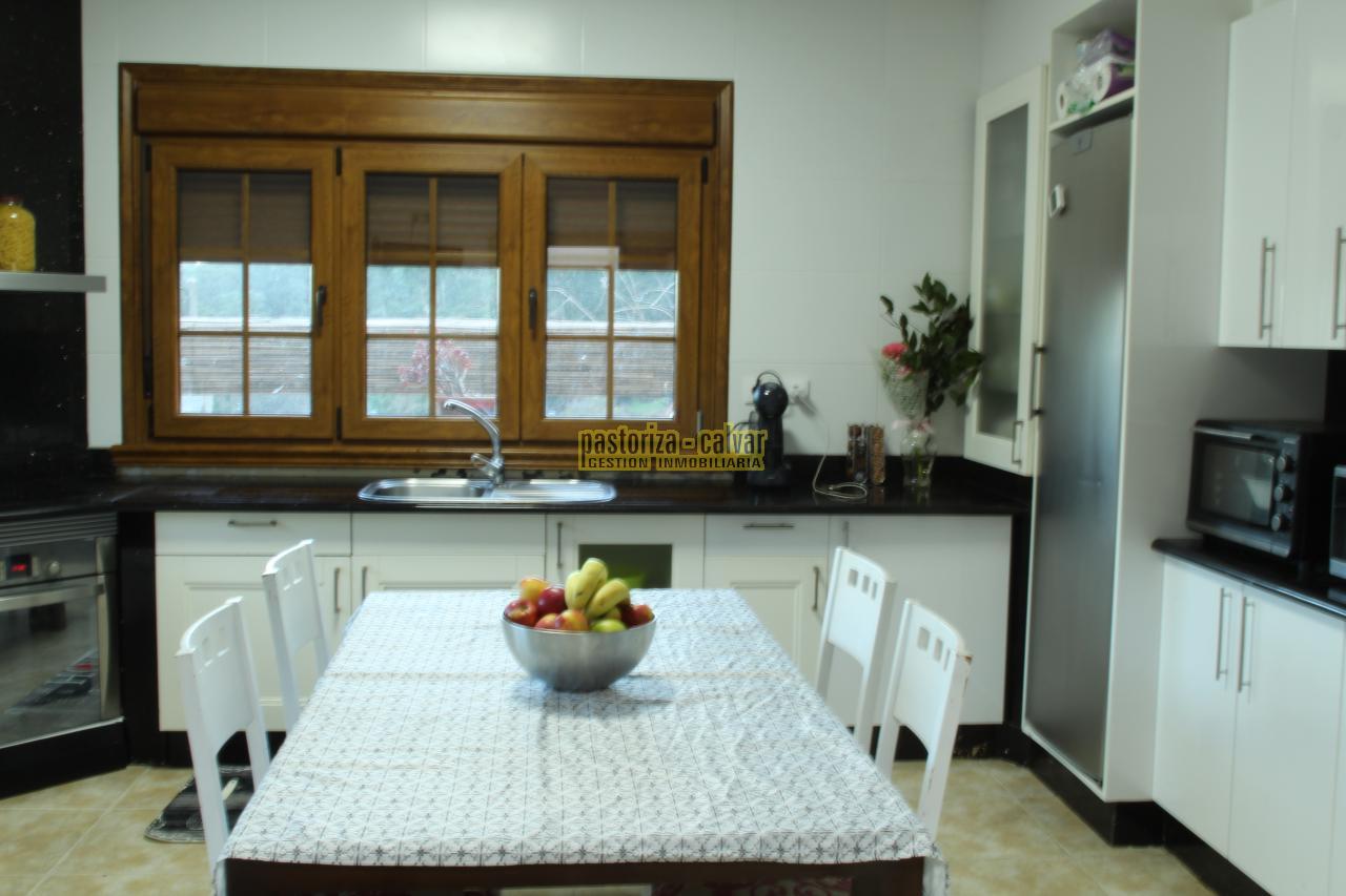 La cocina es bonita, moderna y amplia, con vistas al porche trasero, con bastante luz, y cuenta con una zona independiente de lavandería.