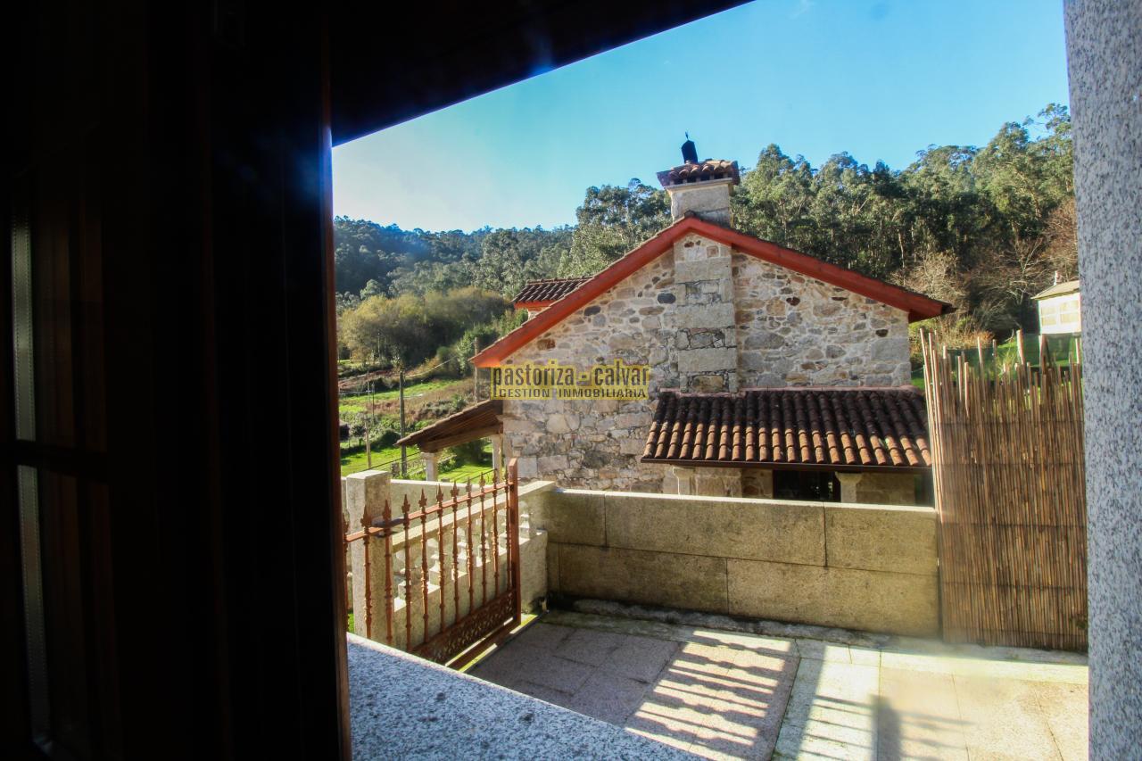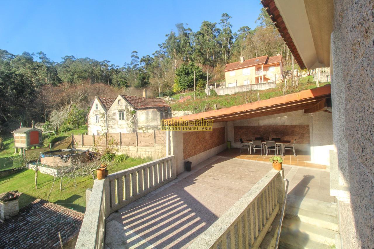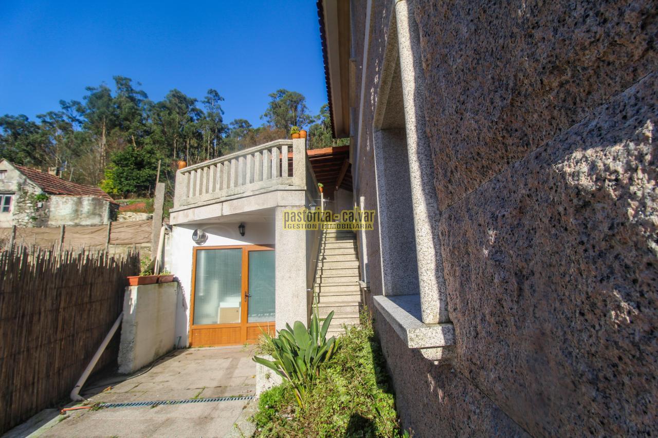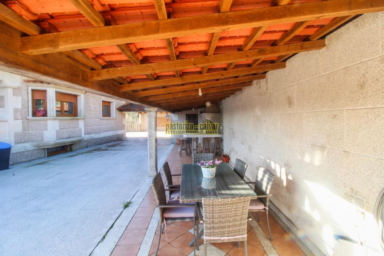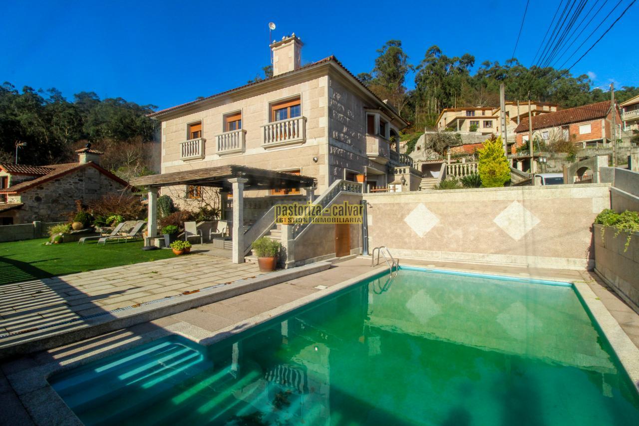Este chalet consigue los dos efectos: construida en una familia vinculada al trabajo de la piedra, se nota en el cariño y el detalle que se puso en su construcci: distinta variedad de piedra gallega en laterales, acabados perfectos en ventanas y balaustradas, preciosa entrada señorial en la parte superior, piedra en suelos de acceso a la casa, en paredes y muros exteriores, bonito porche en piedra en la zona de la piscina...