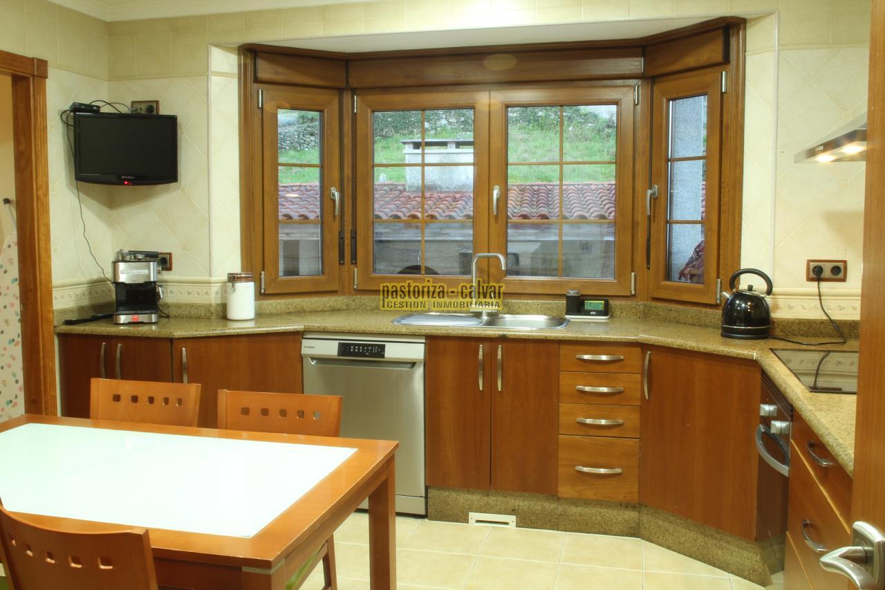 La cocina es bonita, moderna y amplia, con vistas al porche trasero, con bastante luz, y cuenta con una zona independiente de lavandería.